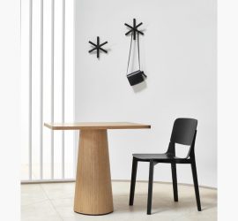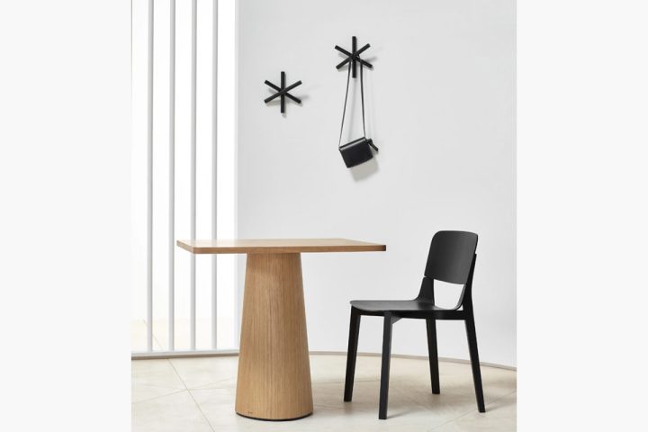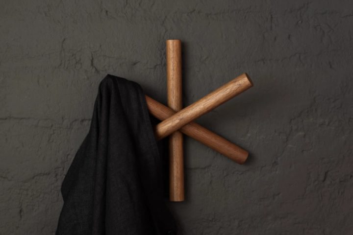 Description: Wall coat hanger in beech and oak wood made by Büro famous for Ton. A new sustainable star-shaped product to hang your clothes or bags in style. Available in various colours, dimensions: 22 x H25 cm, depth 9.5 cm.