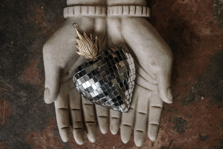 Description: Faceted heart-shaped hanging decoration made by Boncoeurs. Ideal for creating a festive atmosphere, for your Christmas tree or to give a bright touch to your daily life. Dimensions: 11.5 x 18 x 5.5 cm.