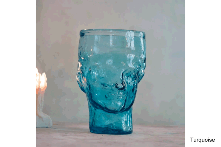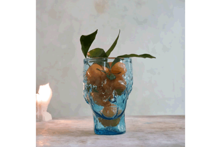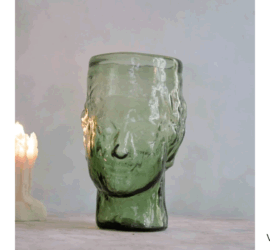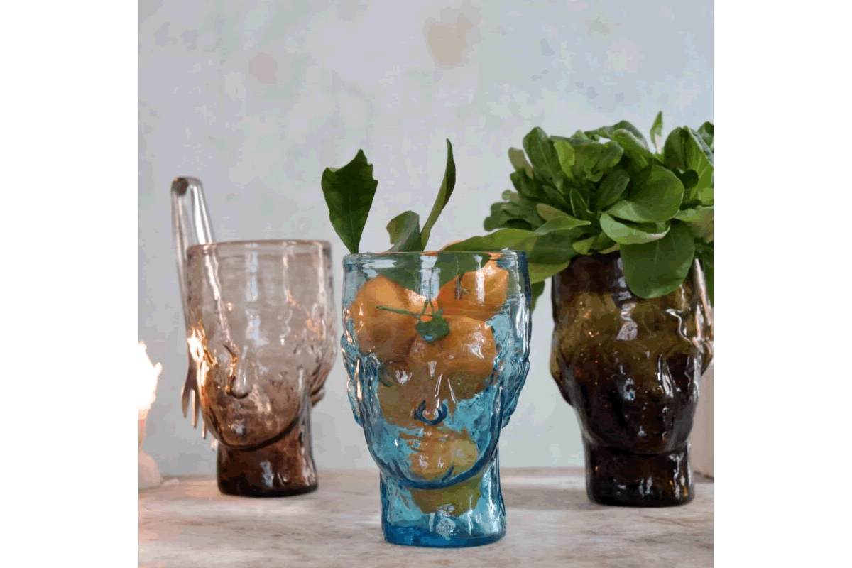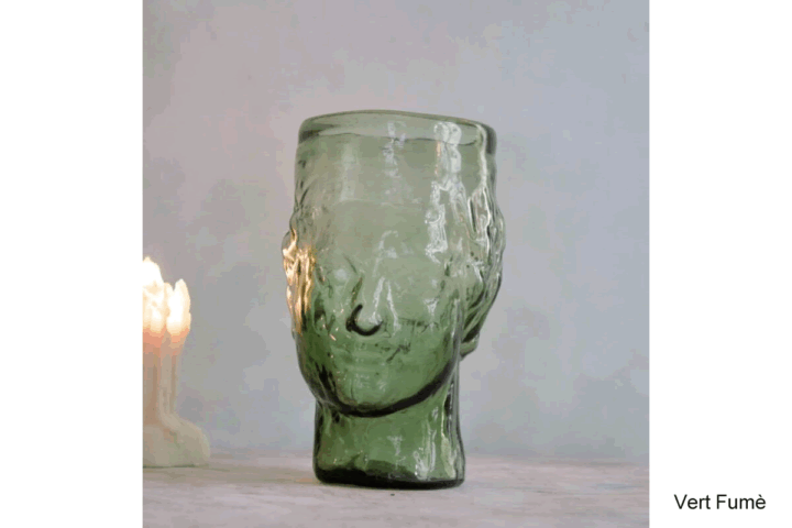 Description: Blown glass vase made by La Soufflerie. The design is inspired by the famous Tête vase. Also usable as a carafe, it is shaped like a Roman head, it is perfect for embellishing your room or table with elegance and originality. Dimensions: Ø10.5 x H23 cm.