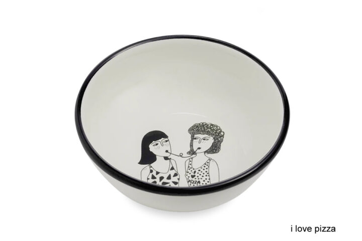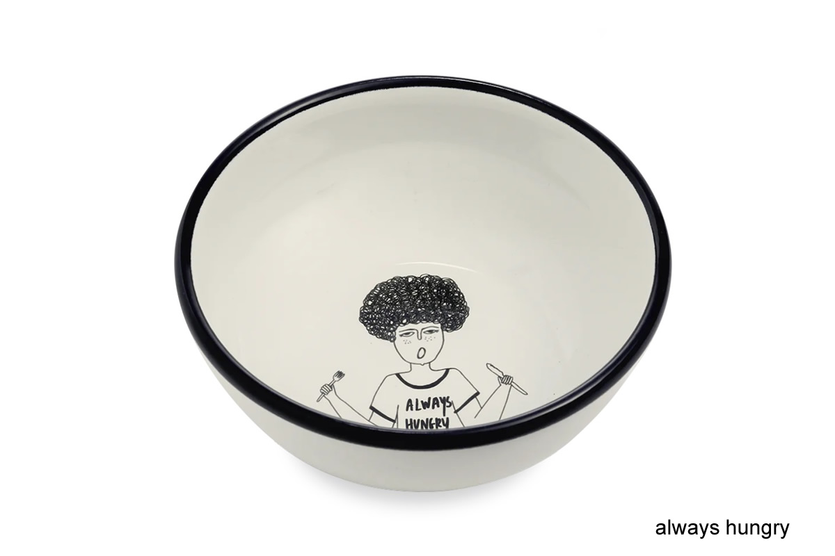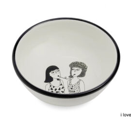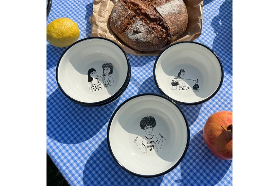 Brand: helen bDescription: Enamel bowl designed and created by Helen B. The underlying theme of the entire collection are the creations with figures and quotes that can brighten your day with a smile. Available with various fun and irreverent designs, dimensions: Ø14 x H5 cm.