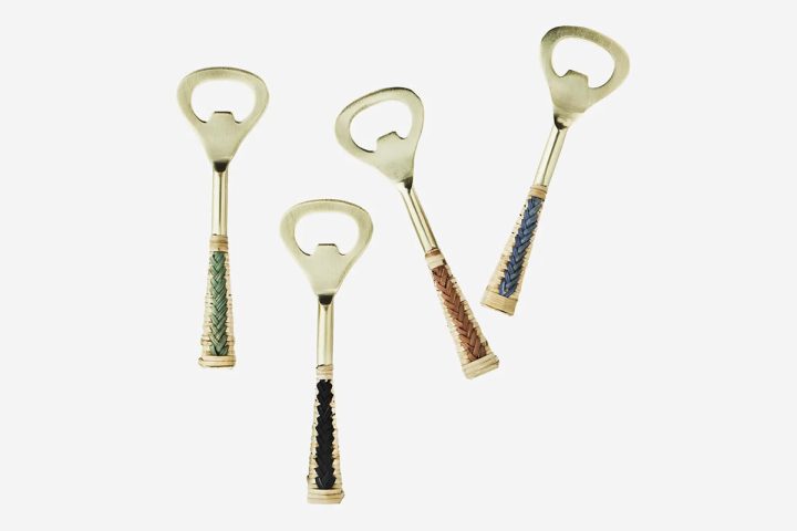 Description: Steel bottle opner made by Madam Stolz. Cane decorated with colored bamboo which adds a touch of elegance and guarantees a comfortable grip. Dimensions: 15 cm.