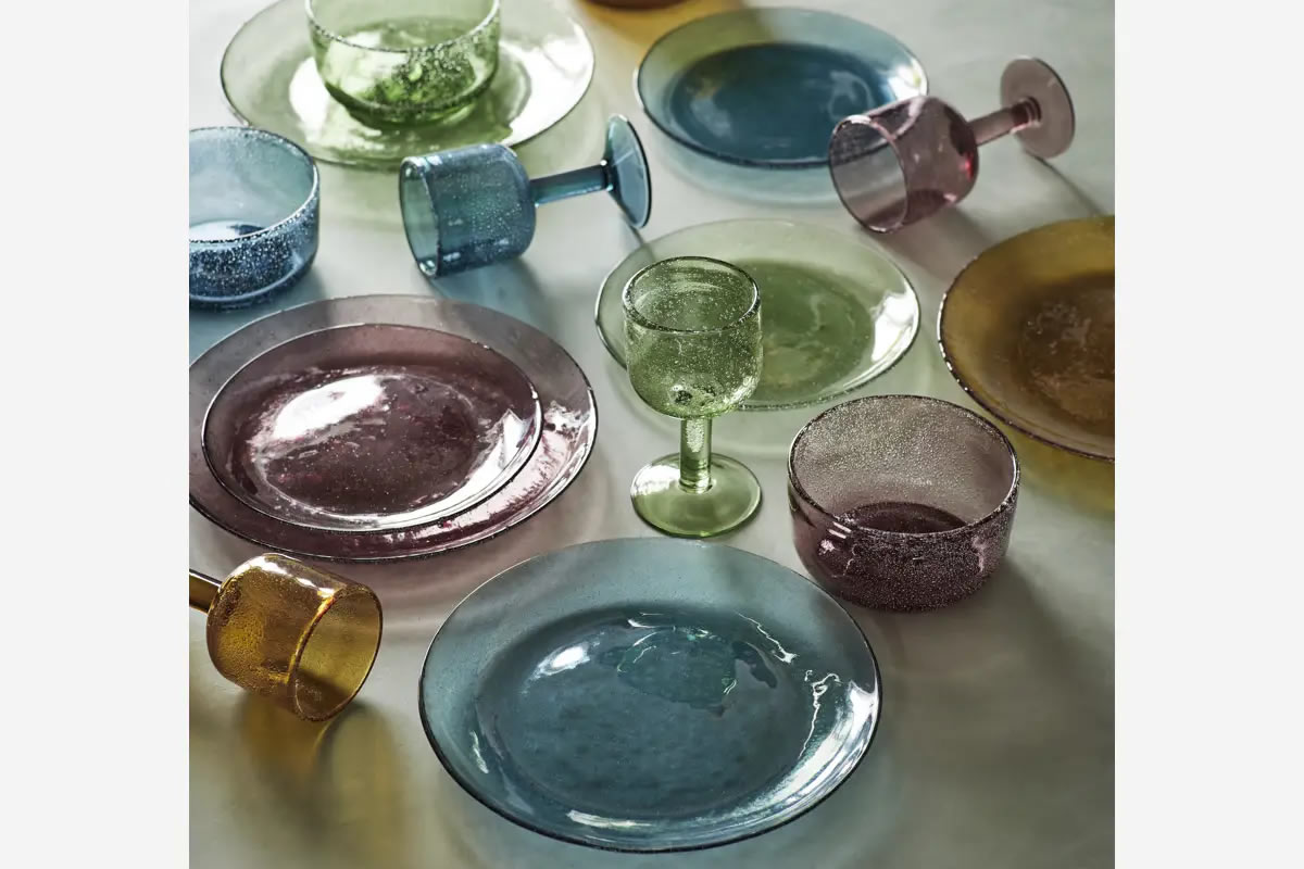 Brand: Madam StoltzDescription: Colored glass plate produced by Madam Stolz. Add a touch of style to your table with translucent finish that plays with the light, creating a fascinating visual effect. Available in a variety of bright colours, it is available in 2 versions: Dinner Ø26 cm, Lunch Ø20 cm.