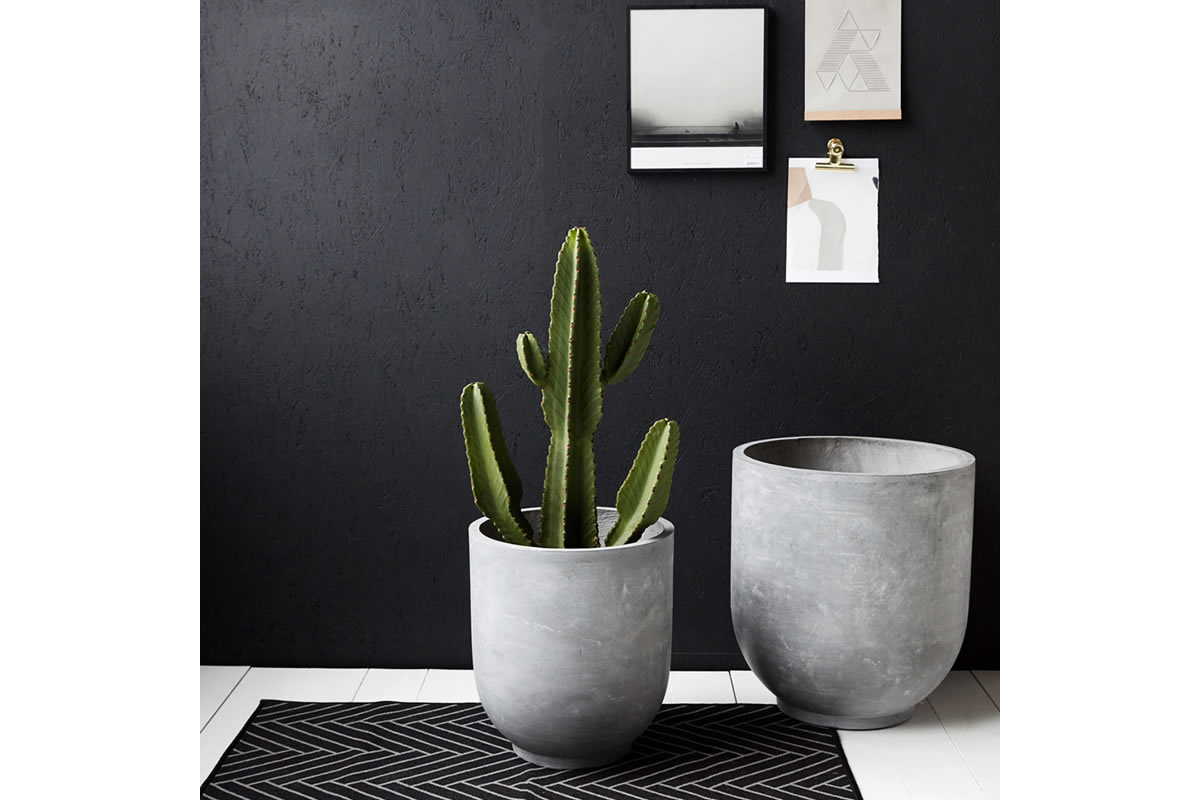 Brand: House DoctorDescription: Clay fiber vases with a concrete effect finish made by House Doctor. The vase can be used both inside and outside. Perfect for your green plants and interior decoration. Available in 5 dimensions: XXL Ø50 x H55cm, XL Ø40 x H45 cm, Large Ø30 x H34 cm, Medium Ø24 x H28 cm, Small Ø18 x H22 cm.