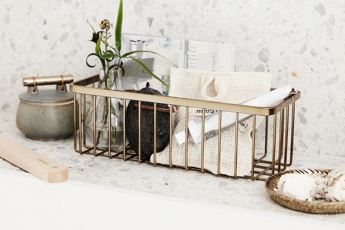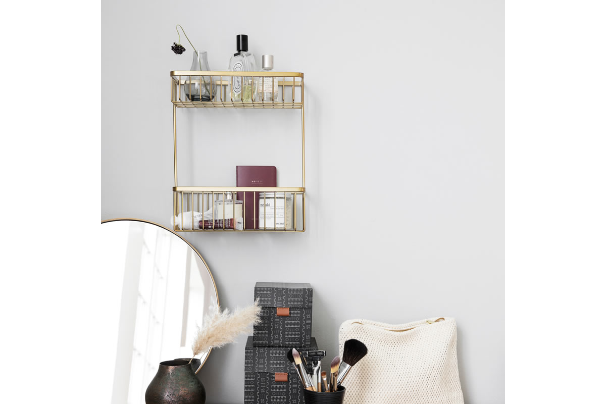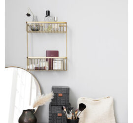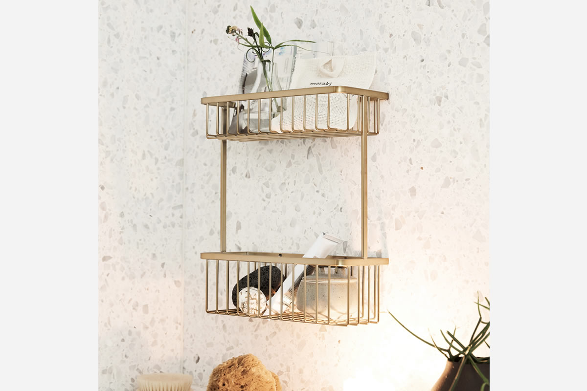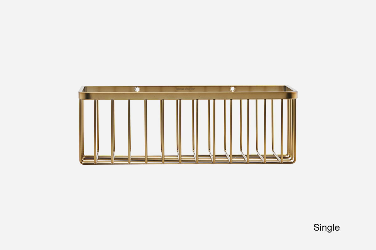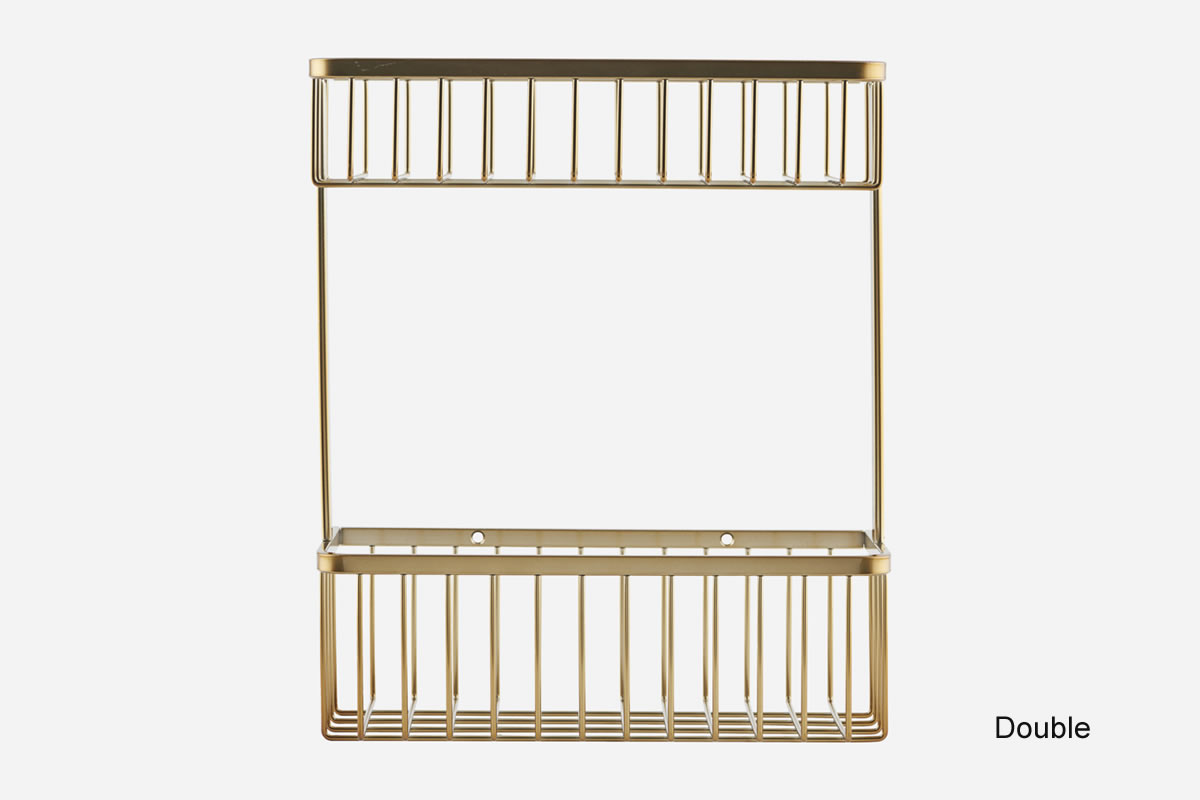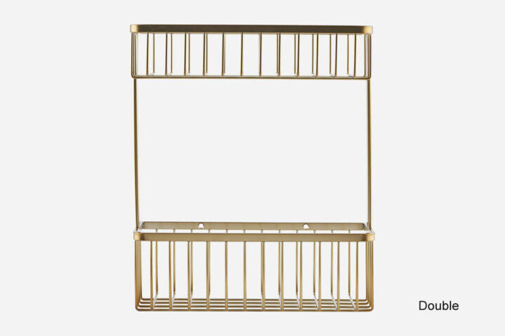 Description: Cestino prodotto da House Doctor. Appendilo nella doccia per tenere i prodotti a portata di mano o posizionalo accanto al lavandino per riporre prodotti per la cura della pelle e saponi. Il cestino è realizzato in acciaio spazzolato e ha un esclusivo aspetto ottone che dona luminosità e calore all’arredamento del tuo bagno. Dimensioni: Single 28 x 11 x H9.5 cm, Double 28 x 11 x H33 cm.