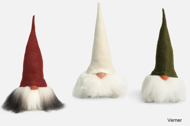 Brand: Asas TomtebodDescription: Gnomi realizzati in lana Gottland e feltro, fatti a mano e prodotti da Asas Tomtebod. Le variazioni che si creano nel colore e nella forma della barba e dei capelli rendono unico ognuno di essi. Dimensioni: Lady Sigrid H50 cm, Sigvard H50 cm, Valter H25 cm, Verner H50 cm, Alfred 25 cm, Niklas H40 cm, Viktor H20 cm, Tomte Large 30 cm. Non lavabile. Non adatto ai bambini al di sotto dei 3 anni.