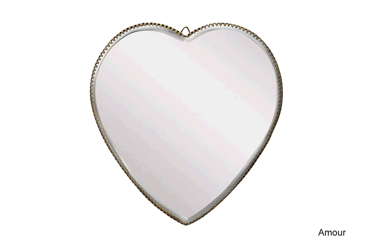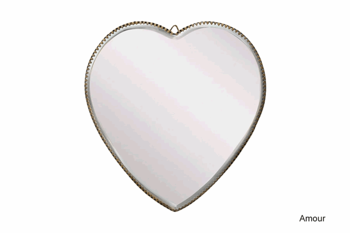 Specchietti in metallo a forma di cuore realizzati da Boncoeurs. Simboli ricchi di bellezza e insegnamenti per vivere una vita quotidiana più sottile alla ricerca di significato e spiritualità. Disponibile in 3 versioni: Eligia 11 x H17,5 cm, Dehlia 8 x H18 cm, Mini Soleil Ø12,5 cm, Amour large 22 × 25 cm, Amour Small 15 x 15 cm, Discret 25 x 18 cm, Maria 23,5 × 18,5 cm, Narcisse 40 x 32,5 cm, Idylle H20,2 x 16,7 cm.