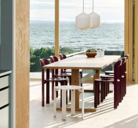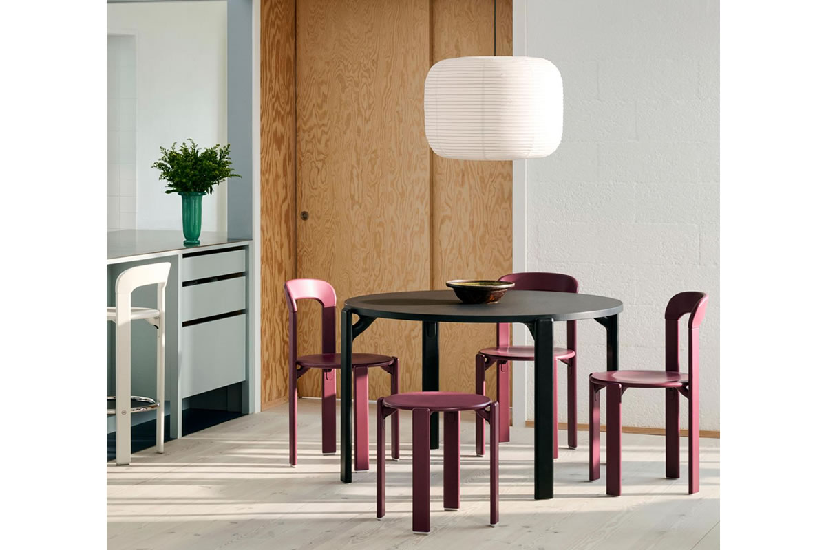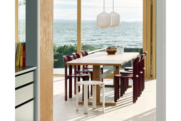 Description: Sedia impilabile in legno massello progettata dal designer Bruno Rey per HAY. Bordi arrotondati e connessioni robuste, combina staffe in alluminio con parti in legno, creando una sedia senza tempo e versatile per ambienti domestici, pubblici o aziendali. Dimensioni: 59 x 48 x H86 cm.