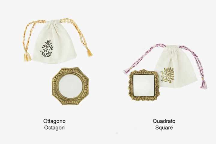 Brand: Madam StoltzDescription: Specchietto in ottone anticato realizzato da Madam Stoltz. Stile vintage e retrò, facile da portare in giro grazie al sacchetto in cotone, ideale anche come regalo. Dimensioni: Ottagono 8.5 x 8.5 cm, Quadrato 6.5 x 6.5 cm.