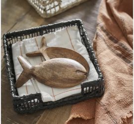 Brand: Madam StoltzDescription: Set di 2 posate da portata in legno a forma di pesce realizzate da Madam Stolz. Realizzate a mano, porta un tocco di rustico al tuo tavolo, perfette per servire le vostre insalate, verdure o piatti misti. Dimensioni: circa 16 cm.