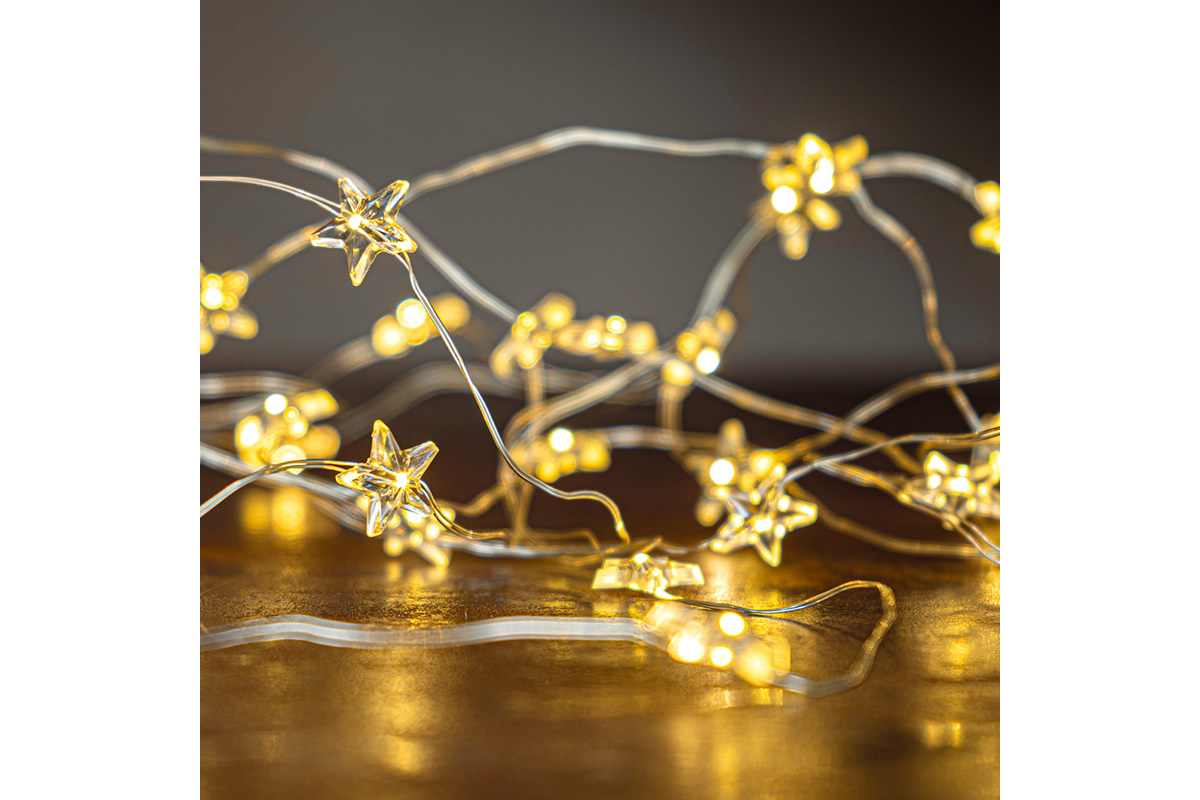Catena di luci brillanti e naturali da 1,9 m per un totale di 40 led a forma di stella prodotta da Sirius Home. Utilizza 2 batterie AA, non incluse. Solo per uso interno.