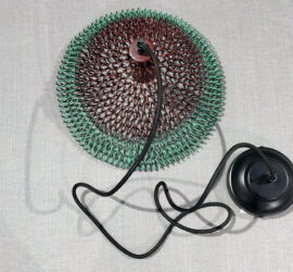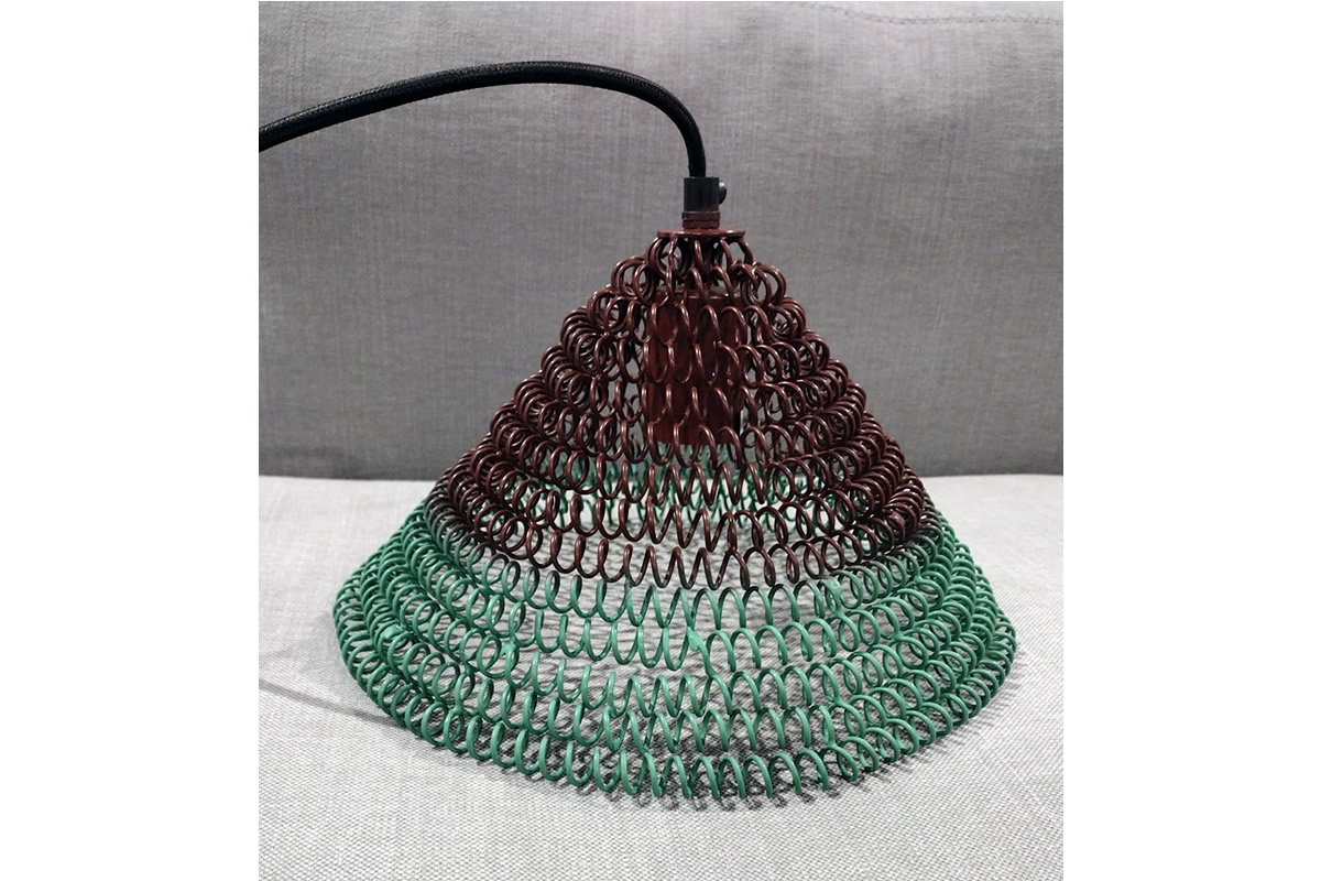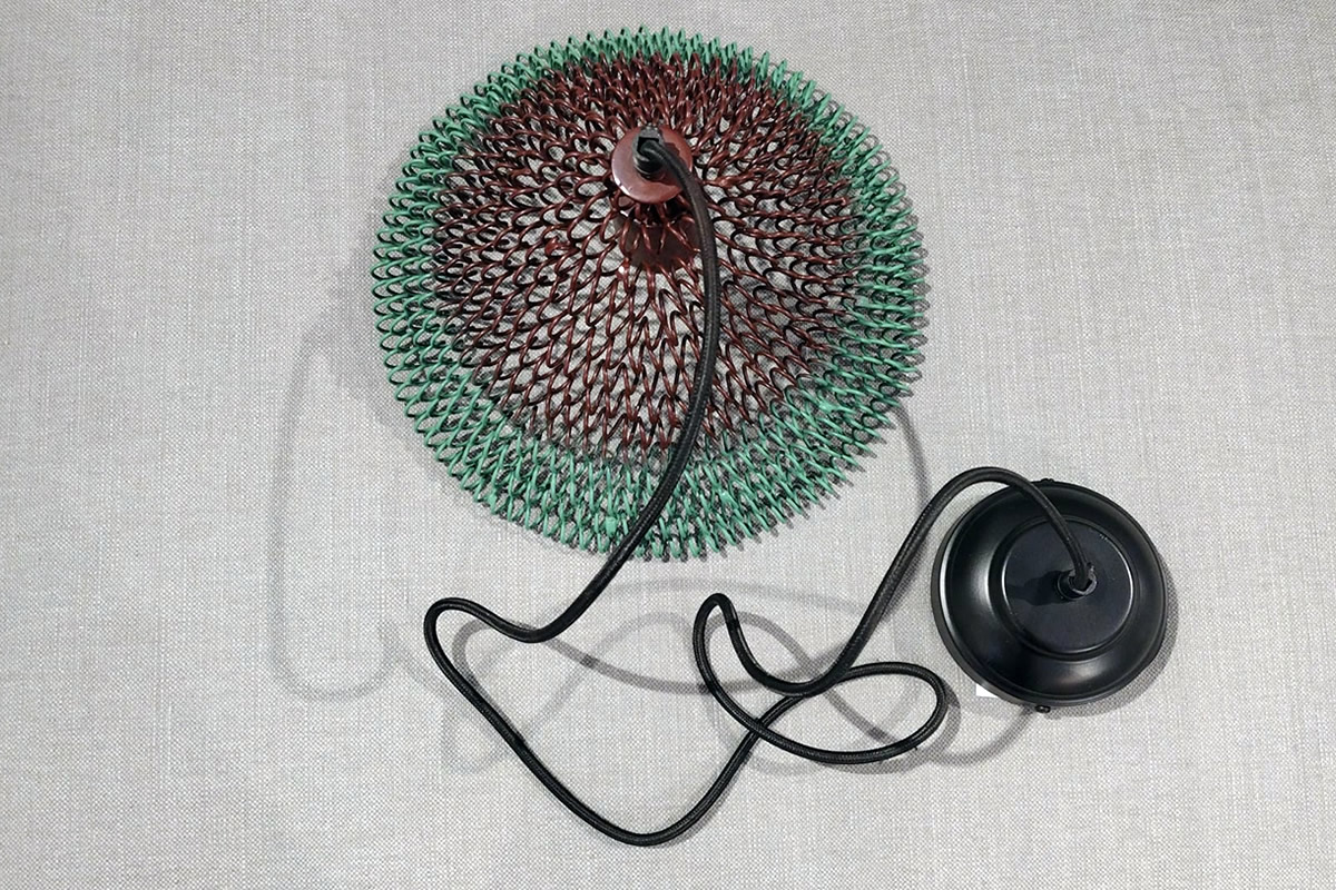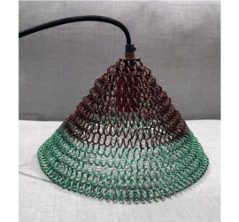 Description: Lampada a sospensione in metallo realizzata da Philippe Model per Chehoma. La luce emessa è morbida e diffusa, creando un’atmosfera accogliente e invitante. La forma aperta della lampada consente alla luce di filtrare attraverso la trama intrecciata, creando ombre suggestive e aggiungendo profondità allo spazio circostante. Dimensioni: Ø30 x h18 cm, cavo rivestito in tessuto nero 135 cm.