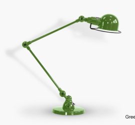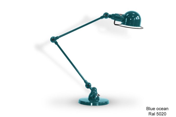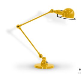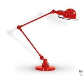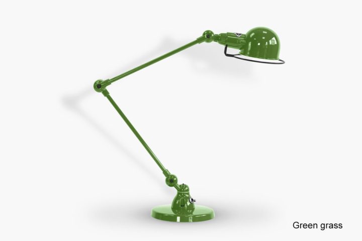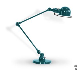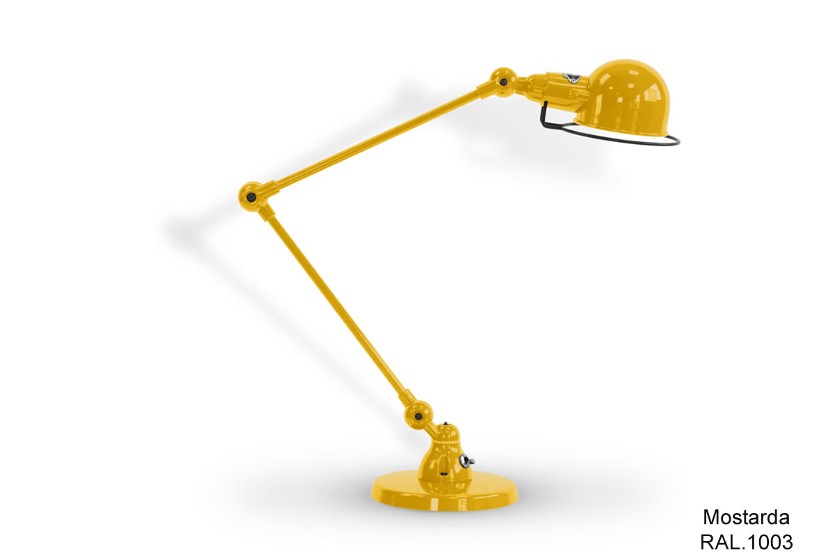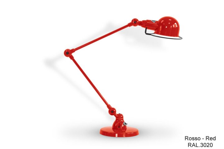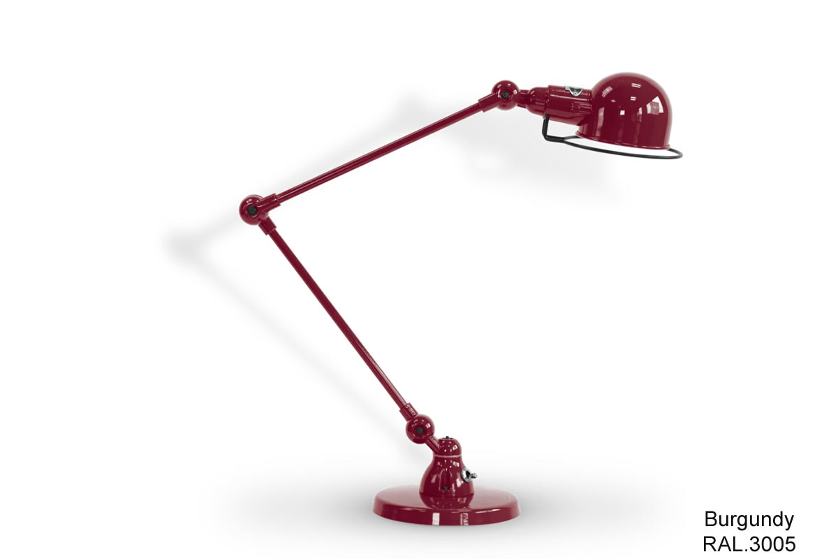 Storica lampada da tavolo a 2 bracci, realizzata da Jean Louis Domecq per Jieldé. Disponibile in un ampia gamma di colori e finiture su richiesta. Dimensioni: braccia 2 x 30 cm, base Ø17 cm.