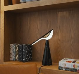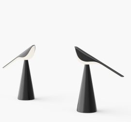 Description: Lampada a forma di uccello di Nao Tamura realizzata per Estabilished amd Sons. Il paralume acrilico si bilancia sopra una base in metallo creando un abbinamento dinamico dal design moderno e raffinato. Dotata di un LED alimentato a batteria e di una base di ricarica magnetica con connessione USB-C per un uso versatile. La sua funzione di attenuazione interattiva è controllata ruotando il corpo a forma di uccello, aggiungendo un tocco giocoso alla sua funzionalità. Dimensioni: 24 × 10 x H30 cm.