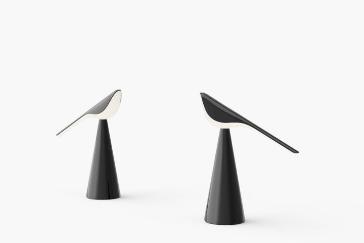 Description: Lampada a forma di uccello di Nao Tamura realizzata per Estabilished amd Sons. Il paralume acrilico si bilancia sopra una base in metallo creando un abbinamento dinamico dal design moderno e raffinato. Dotata di un LED alimentato a batteria e di una base di ricarica magnetica con connessione USB-C per un uso versatile. La sua funzione di attenuazione interattiva è controllata ruotando il corpo a forma di uccello, aggiungendo un tocco giocoso alla sua funzionalità. Dimensioni: 24 × 10 x H30 cm.